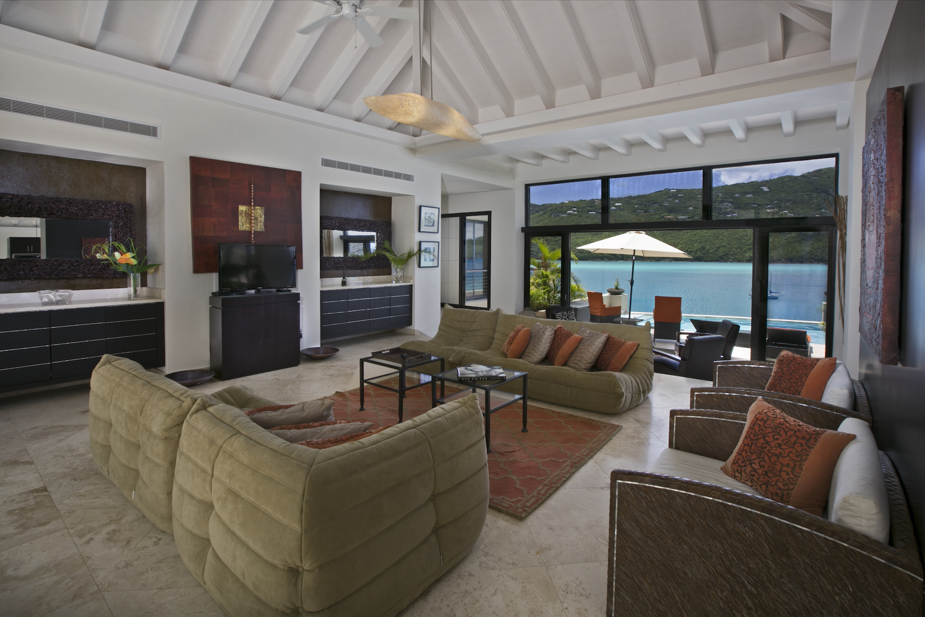 This is your opportunity to experience true island luxury living. Designed with modern elegance and featuring cutting edge smart home technology, this unique estate is one of a kind on St. Croix. The house is wired through Lutron, which controls every rooms lighting, shades & temperature all from an IPad and/or smart phone. There are also portable controls that you can use while you are lying in bed or even when you drive up to the house to turn the lights on, how cool! The shades give you the option of solar and/or black- out shades.